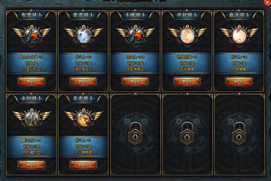 游戏中培养幻兽不只是可以帮助玩家角色一起参战,还可以任命圆桌骑士来获得大量的人物属性,其中: