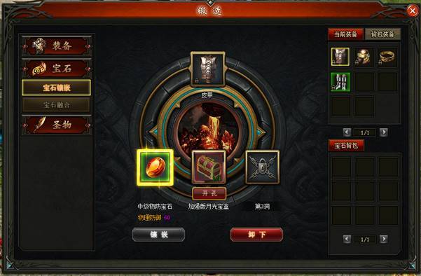 l 未开孔的装备需要先开启对应的孔槽后才可以进行宝石镶嵌。