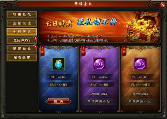 活动内容:活动期间,每天可折扣购买稀有物品,每种物品每天限购1次。