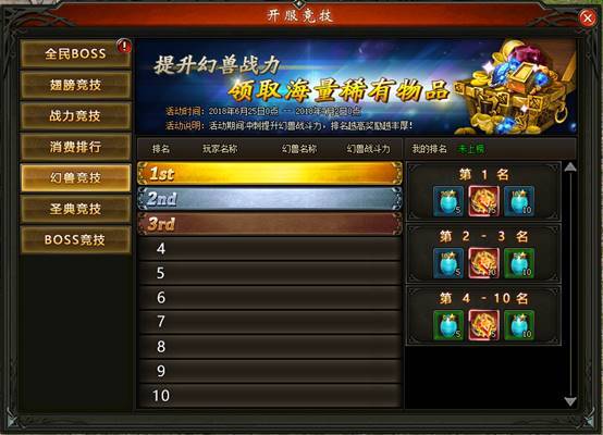 活动内容:活动期间,根据幻兽的战斗力进行排行,全服排行前10幻兽所属玩家可获得排