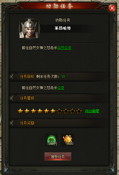 玩家每日可接取魔怪大剿杀任务。魔怪大剿杀任务共有10环,当做完全部10环任务后还会有额外的十环奖励。