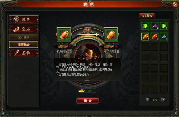 l 宝石可以通过低级宝石进行合成高级宝石;